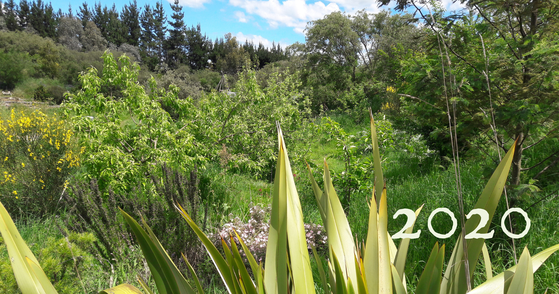 We started planning our food forest in 2007 and started work in 2008 by putting in two swales (water harvesting ditches on contour), and planting a first round of fruit trees and support species. Our kaupapa for the food forest was to see what could be grown without irrigation, and how we could create a space that felt natural as well as productive. We wanted to be able to grow food, fibre, medicine, fuel and firewood in a setting where we could go foraging, and to create a space that could be used for recreation and education too. We now have over 40 different fruit and nut species plus many perennial vegetables, medicinal herbs, pollinator plants and craft plants, and we host tours, workshops and special events. Our little earth hut and ‘The Wonky Gate’ bar are often as much of a highlight as the plants!