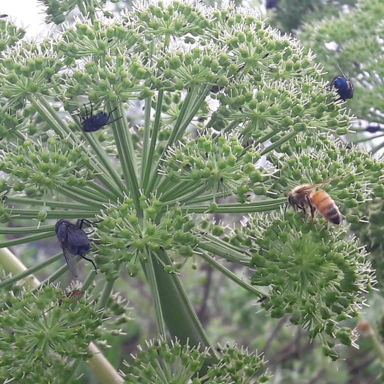 Large aromatic biennial herb in the carrot family, native to temperate and subarctic parts of Europe. In the first year a large rosette of leaves is produced, but during the second year, the stem can reach a height of 2.5 meters, opening to large chartreuse umbelliferous flower heads.