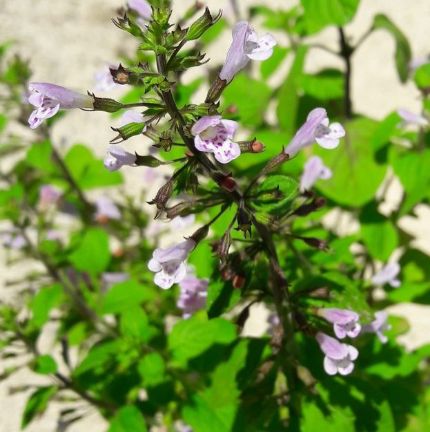 The word “calamint” traces its origins back to the Greek “kalaminthe,” meaning either “odiferous plant” or “beautiful mint.” derived from the Greek Kalos (excellent because of the ancient belief in its power to drive away serpents and the dreaded basilisk – the fabled king of the serpents, whose very glance was fatal.