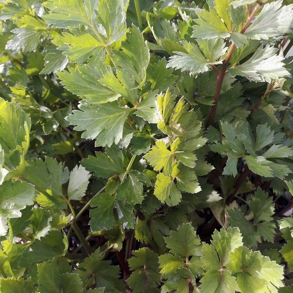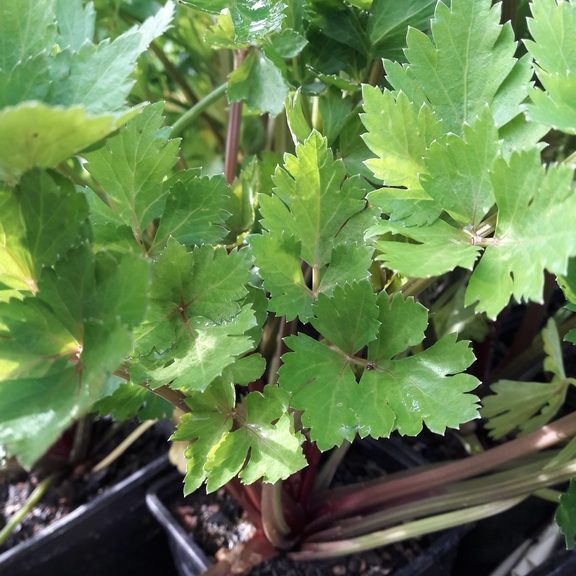 Excellent red stemmed variety of this celery for growing as a herb in pots or in the garden, making a stunning addition to the vege or herb plot. Grows like Italian (flat leaf) parsley but has a celery flavour, and requires way less water than regular celery. Use the stems and leaves separately or together as you would for normal celery – in salads, soups and stews. Plants can be cut frequently, starting about 4 weeks after planting. They will regrow and remain productive over many months. Cutting Celery also dries really well, simply hang upside down in a well-ventilated area. Alternatively chop and cover with olive oil and freeze into ice cube trays. Commercially grown celery is one most pesticide-contaminated vegetable crops, so it’s great to grow your own at home. Celery is low in carbohydrates and calories and high in potassium – so good for the heart and muscles. Celery seeds can be used as flavouring or spice, either as whole seeds or ground and mixed with salt.
